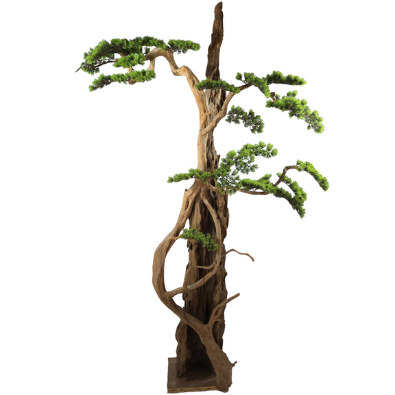 Ein beeindruckender künstlicher Bonsai, handgefertigt aus echtem Treibholz mit detailgetreuen, satten grünen Blättern. Jedes Stück ist ein Unikat – Form, Maserung und Wuchs sind einzigartig. Ideal als stilvolles Highlight für Wohnräume, Büros, Hotels oder Restaurants. Pflegeleicht und dauerhaft schön, ganz ohne Gießen oder Beschneiden.